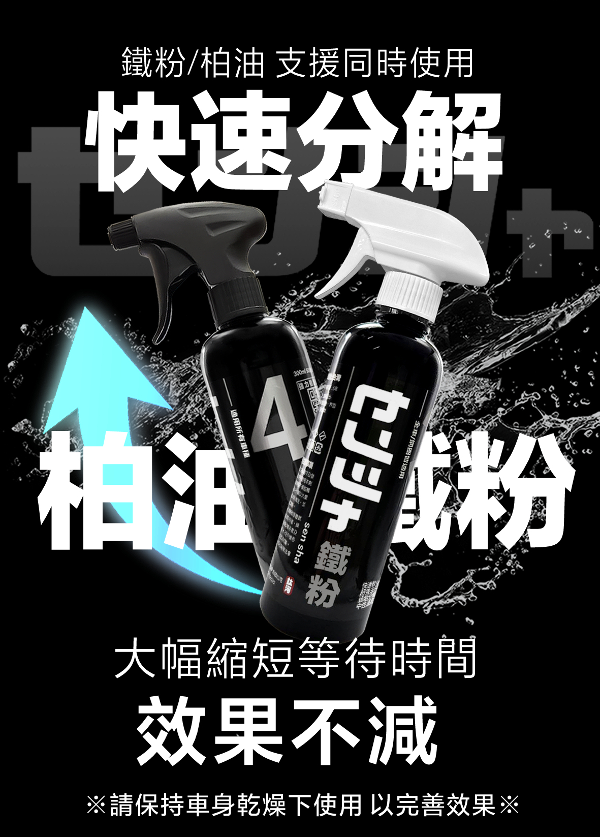 大幅減少藥劑停留於車身上的時間,而導致漆面/鋁圈產生藥劑痕跡的問題