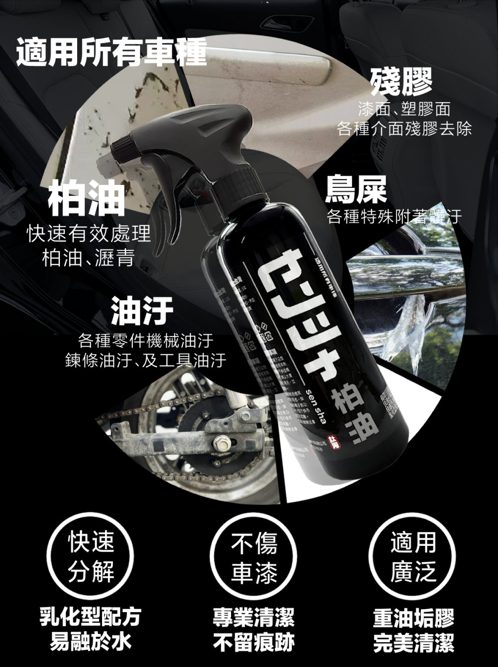 能夠快速有效地處理柏油、瀝青、蠟垢、油污、貼紙殘膠、鳥屎等各種污漬,