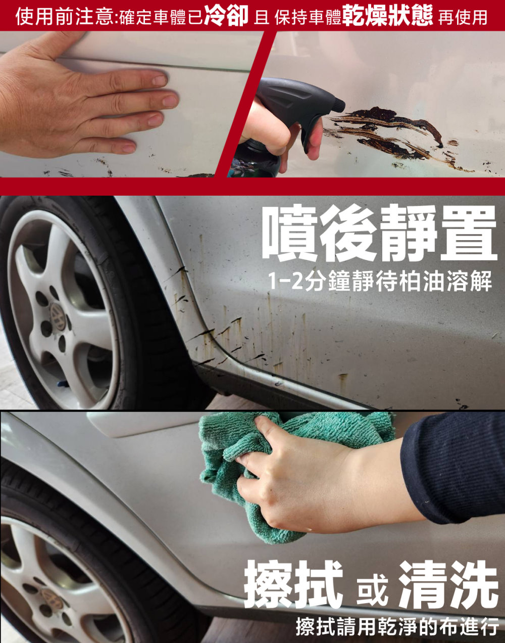 ◼️適用:柏油、瀝青、蠟垢、油污、貼紙殘膠、鳥屎等各種污漬